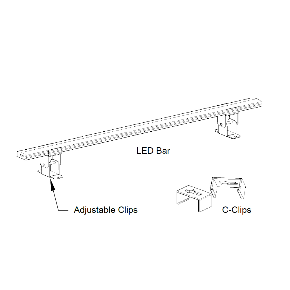 Includes <size> LED-Bar, adjustable clips, C-clips, power supply, barrel extension, dimmer switch, and barrel splitter. Everything you need for <unknown> feet of lighting.